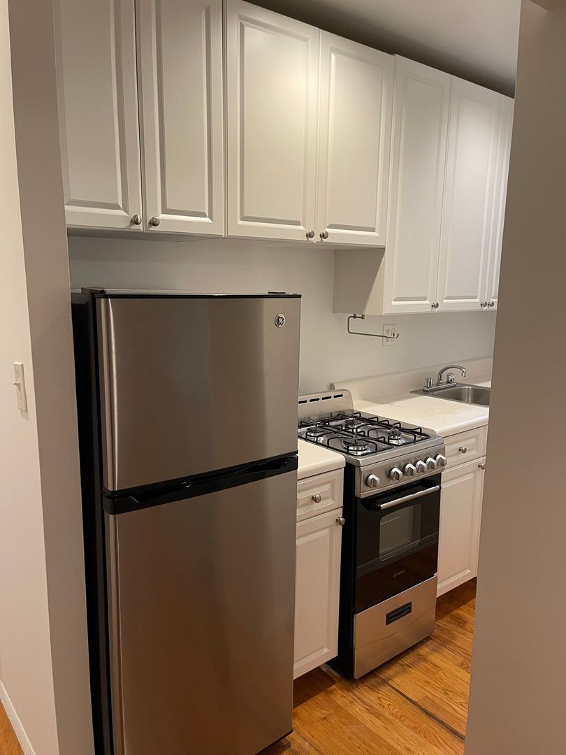 Spacious one-bedroom between 1st & York Avenues.  Finished floors & high ceilings throughout.  White full-service kitchen with NEW STAINLESS STEEL APPLIANCES that were just installed. Windows throughout.  Great closet space.  Live-in super.  Near E. 77th St. for #6 train, Q Train, Lenox Hill hospital, shopping & entertainment.
